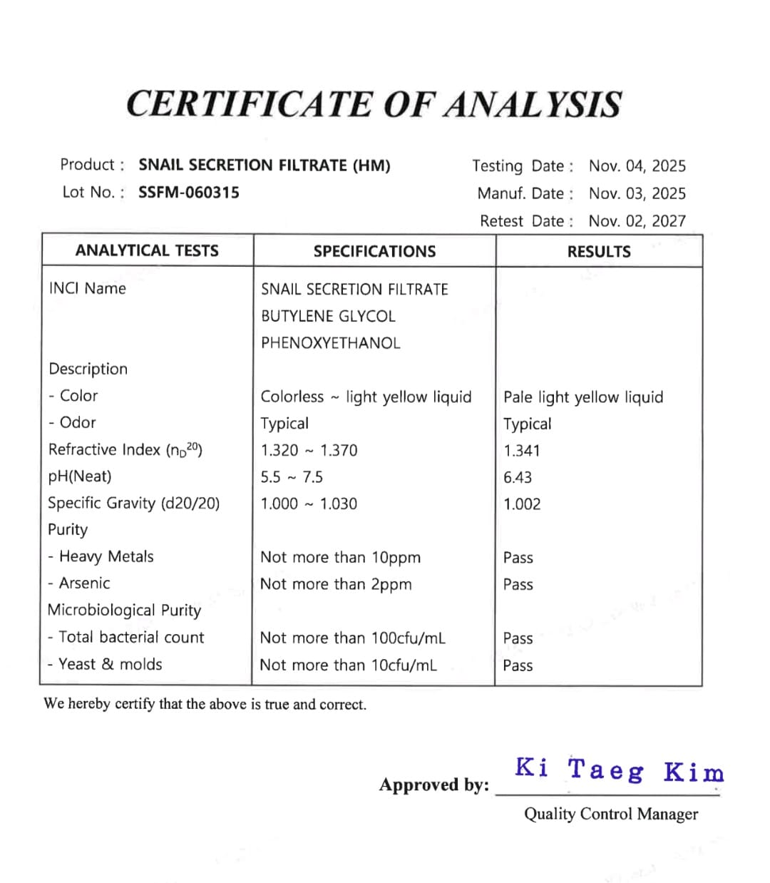 INCI: Snail Secretion Filtrate, Snail Slime